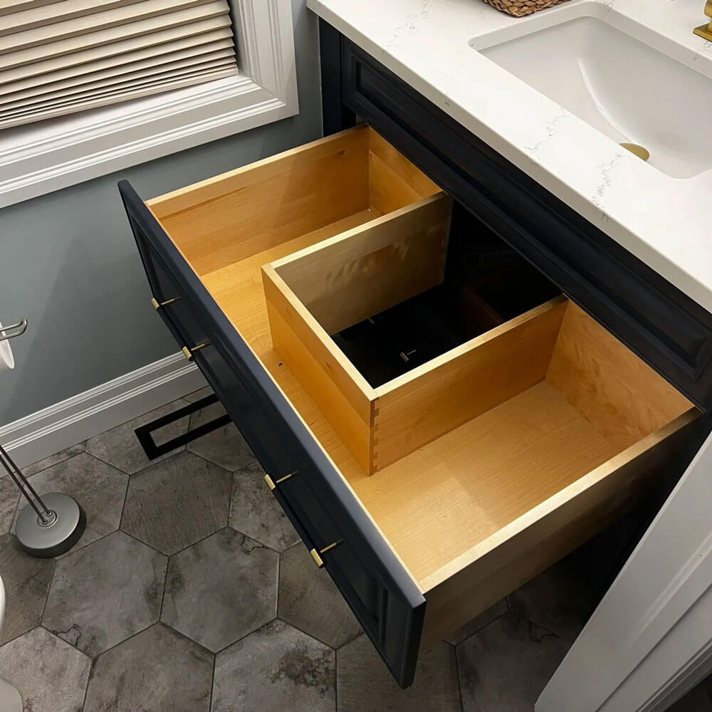 Chaque projet de vanité de salle de bain sur mesure débute par une phase de design approfondie. À Montréal, Laval et sur la Rive-Nord, nos designers prennent le temps de comprendre vos besoins, vos habitudes et vos préférences esthétiques.À Blainville, Saint-Eustache et Sainte-Jérôme, nous concevons des vanités de salle de bain sur mesure qui s’intègrent parfaitement à l’architecture de votre salle de bain. Choix des matériaux, des finis, des poignées et des solutions de rangement, chaque détail est soigneusement étudié.